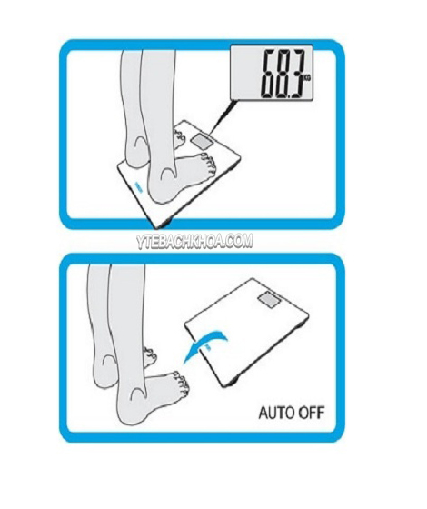 - Đặt 2 chân song song trên mặt cân, phân bố đều trọng lượng của bạn trên 2 bàn chân