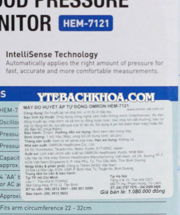 - Xuất xứ: LINH KIỆN CHÍNH SẢN XUẤT TẠI OMRON HEALTHCARE, KYOTO, NHẬT BẢN, LẮP RÁP TẠI NHÀ MÁY OMRON BÌNH DƯƠNG, VIỆT NAM