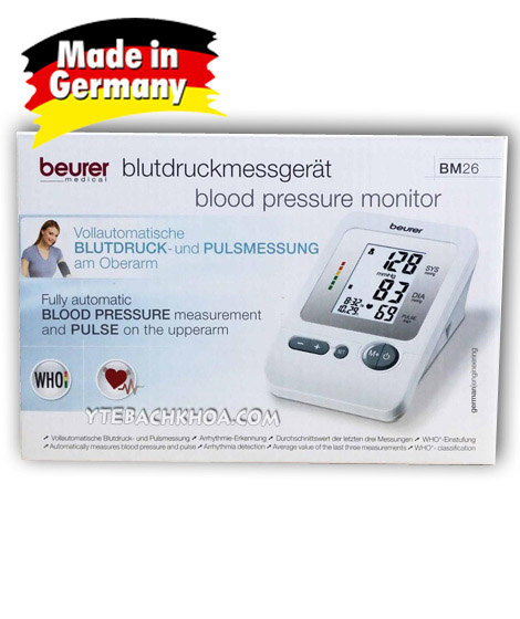 - Máy Đo Huyết Áp Bắp Tay Beurer BM26 với thiết kế cải tiến hơn sẽ giúp bạn đo huyết áp ổn định với kết quả đo chính xác cao, đã được tổ chức y tế thế giới WHO công nhận, giúp theo dõi và bảo vệ sức khỏe gia đình. Sản phẩm thích hợp cho những bệnh nhân máu nhiễm mỡ và xơ vữa động mạch, người đang bị bệnh tiểu đường hay paskiton,… Đặc biệt, máy đo huyết áp bắp tay Beurer BM26 có màn hình to dễ nhìn phù hợp cho người cao tuổi.