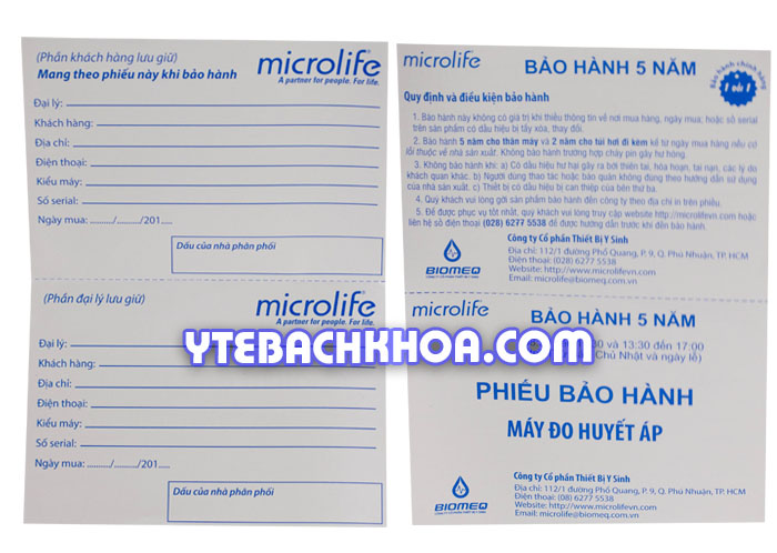 - Tự hào về chất lượng sản phẩm, hãng Microlife cam kết cung cấp chế độ bảo hành hư đổi mới (1 đổi 1), mang lại lợi ích tối đa cho khách hàng.